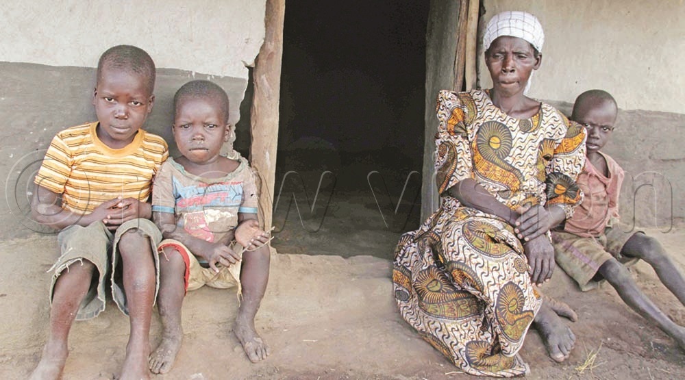 Sophia Ayugi and her grandchildren. She is the mother of Opok from Kole district, who was buried alive by clan members over accusations of killing his father in 2015.