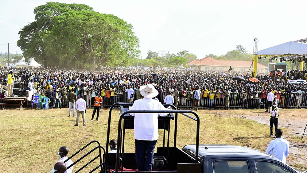 President Museveni addresses a rally at Bukedea Town Council grounds in Bukedea district on Saturday. (PPU Photos)