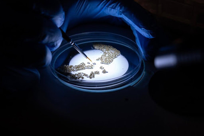 Mosquito larvae are screened in a Petri dish in the Target Malaria lab. (Courtesy photo)