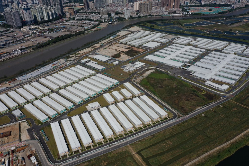 An aerial view of Lok Ma Chau Covid Isolation camp in Hong Kong is seen on the border of Hong Kong and Shenzhen in mainland China (behind) on January 24, 2023/ AFP