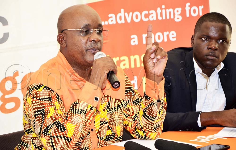 Jonathan Lubega (L), SEATINI-Uganda policy analyst addresses journalists as Stella Rose Akutui, ESAFFI looks on during a press conference about CSO perspectives on the financial year 2026/2027 National Budget framework paper at Civil Society Budget Advocacy Group (CSBAG) in Ntinda on January 13, 2026. (Credit: Juliet Kasirye)