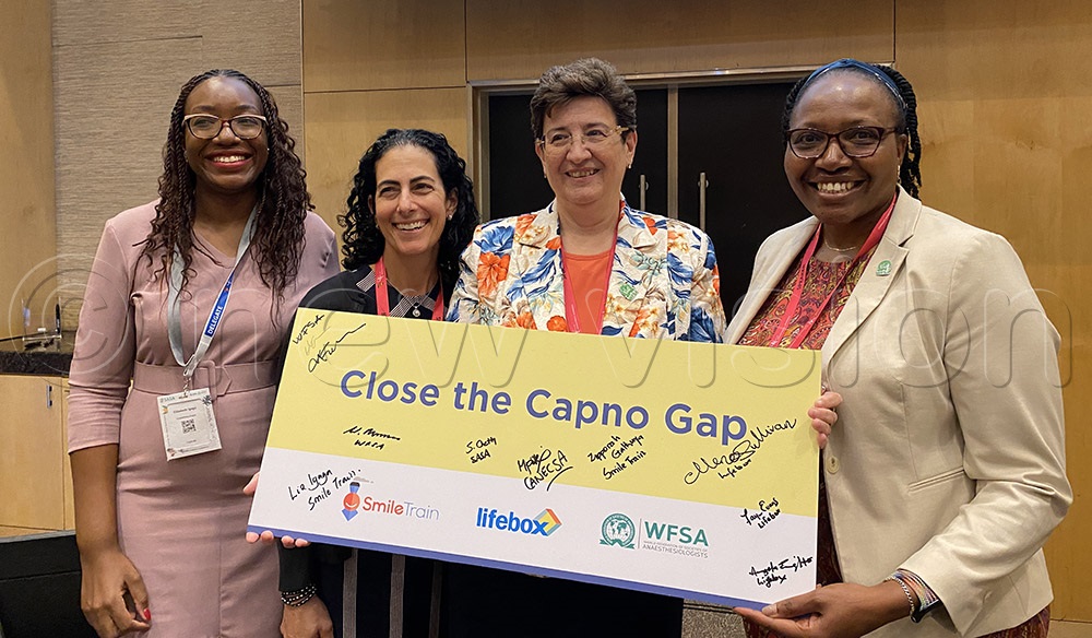 (R-L) Dr Zipporah Gathuya Paediatric Anaesthesiologist, Prof Daniela Filipescu President of the World Federation of Societies of Anaesthesiologists (WFSA), Dr Faye Evans member of the Lifebox Global Governance Council and Dr Elizabeth Igaga Director of Program Safety at Smile Train. (Credit: Jacky Achan)