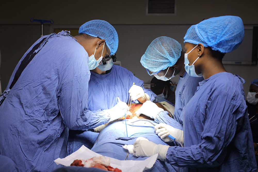 A medical team at Mulago National Referral Hospital while conducting a surgery during the Breast Reconstruction Camp on Thursday, April 9, 2026. (Credit: Mulago National Referral Hospital)