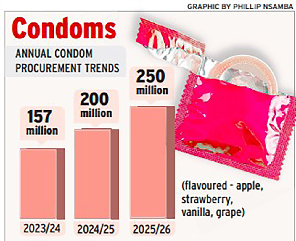 The Government has procured 250 million flavoured condoms for the 2025/2026 financial year. They will be available in apple, strawberry, vanilla, and grape flavours, following complaints that previous brands smelled unpleasant. Production is underway, with 120 million expected by January.