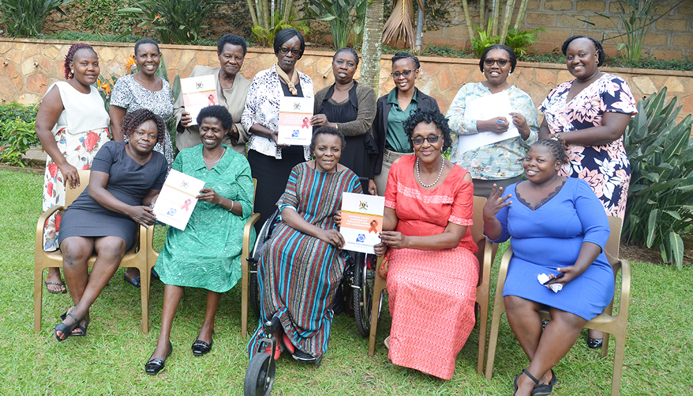 Women Living with HIV pose for a photo after the launch. (Photo by Agnes Kyotalengerire)