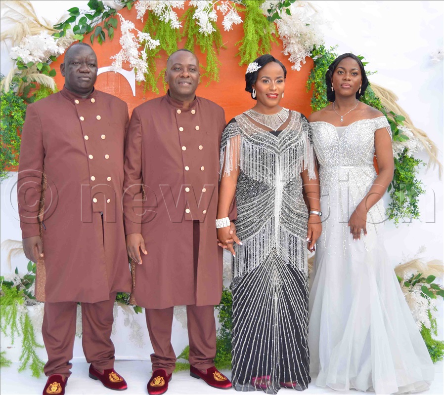 The Lwangas (second left and third-left) with their Bestman and Matron during the reception at Ggaba Catholic Parish Gardens on Friday, August 4, 2023. Photo by Mathias Mazinga