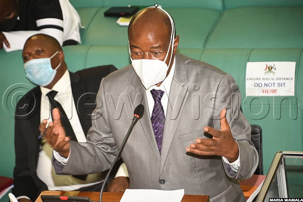Amos Lugolobi, the finance State minister for planning, presents a motion to consider the Budget Framework Paper at Parliament on Friday, January 28, 2022. (Credit: Maria Wamala)