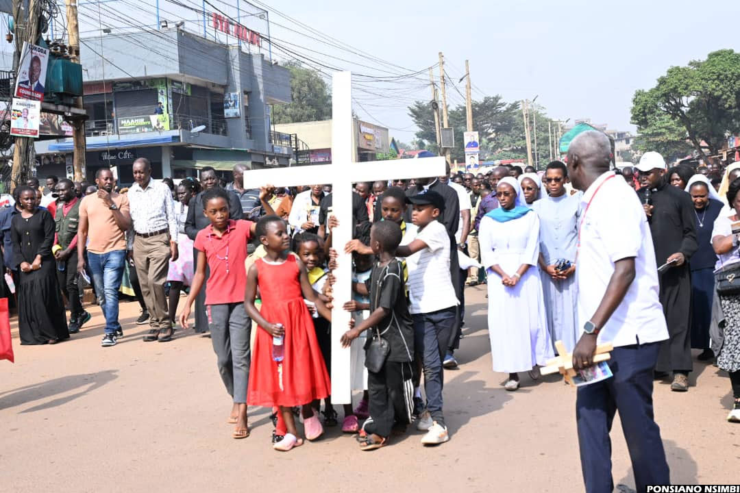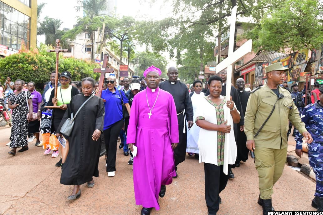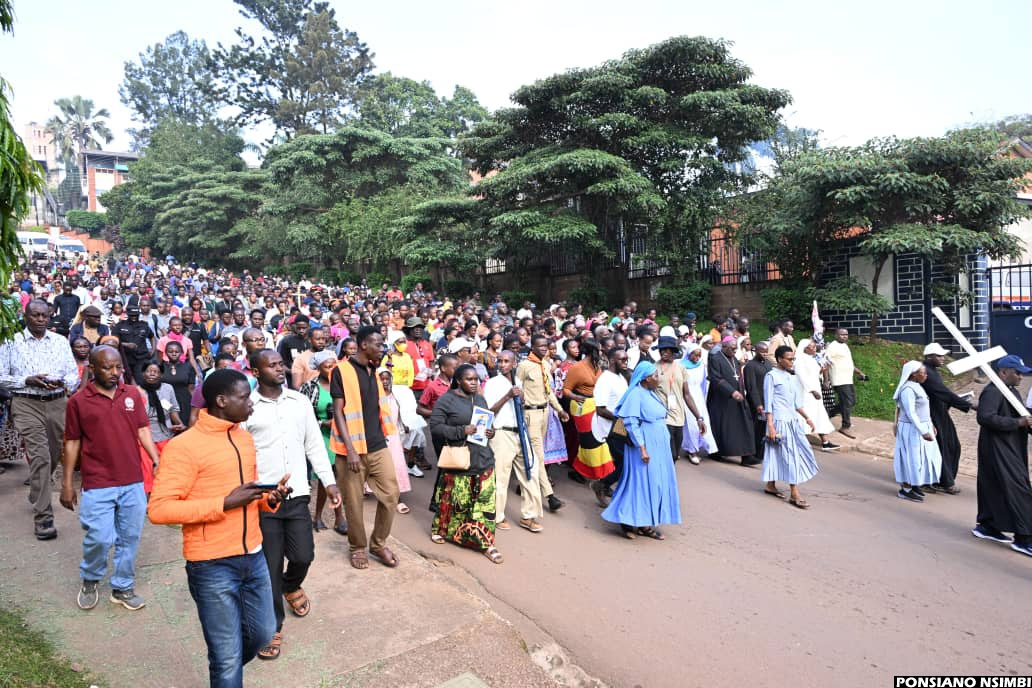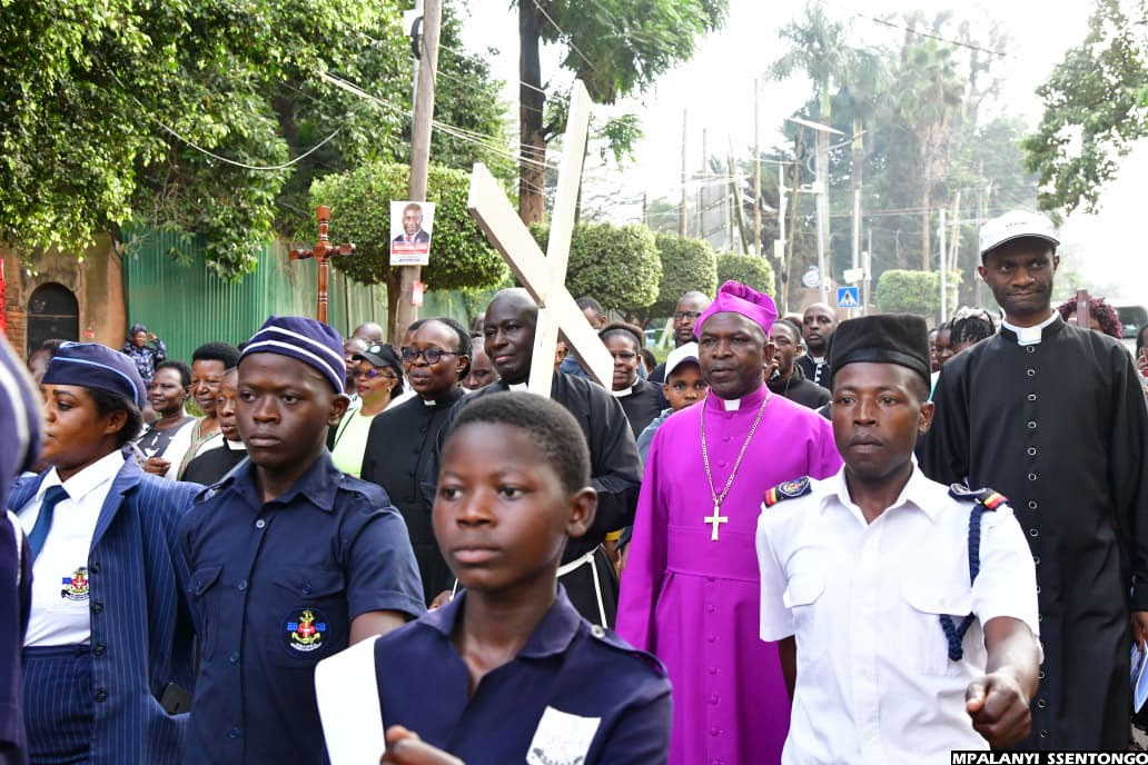 10:10 AM By Patrick Kibirango: The Way of the Cross procession has today moved in deep faith and unity from Namirembe Cathedral, making scheduled stopovers at Sanyu Babies’ Home and Mengo Hospital. The journey has now continued towards Old Kampala, where many believers have gathered to take part in joint prayers and reflection.