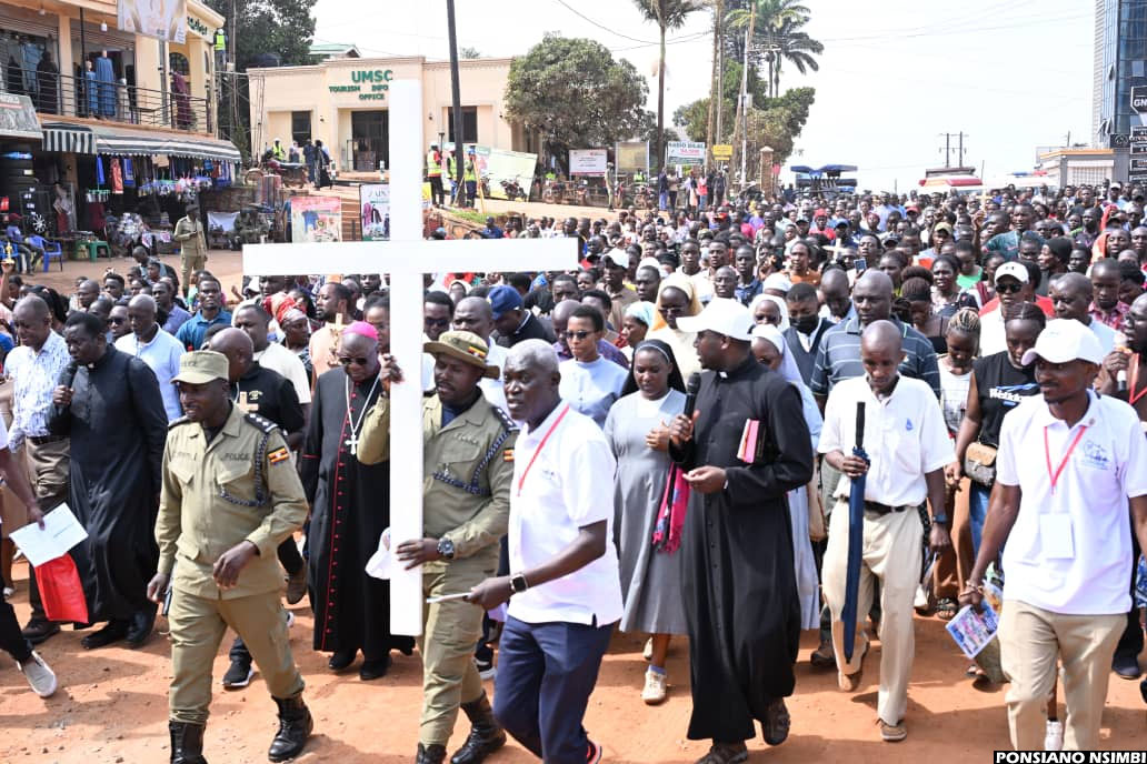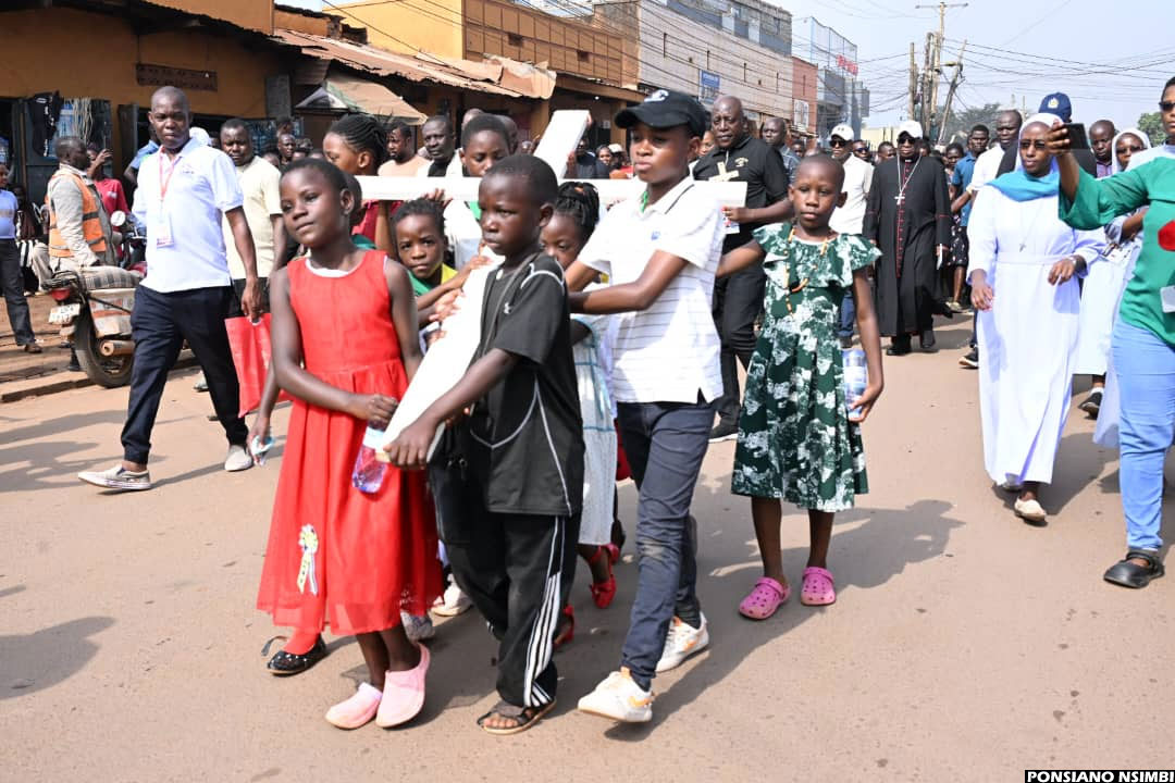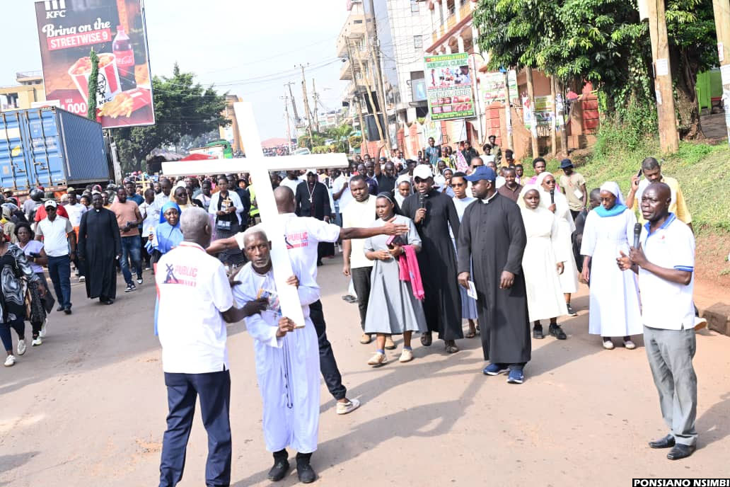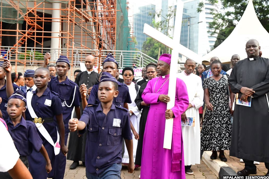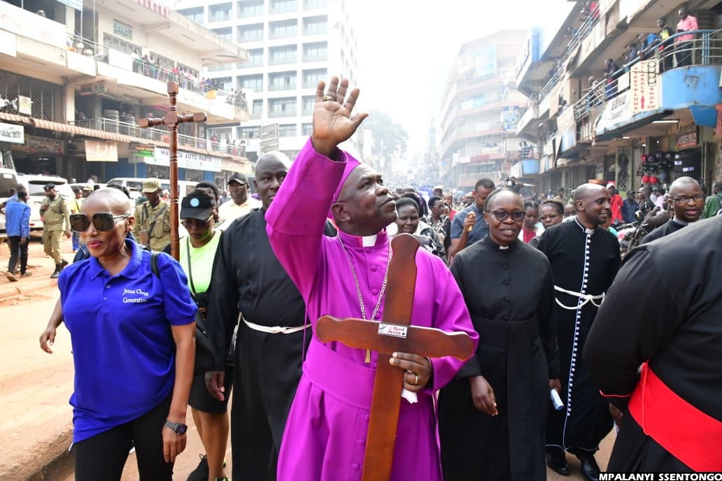 10:10 AM By Patrick Kibirango: The Way of the Cross procession has today moved in deep faith and unity from Namirembe Cathedral, making scheduled stopovers at Sanyu Babies’ Home and Mengo Hospital. The journey has now continued towards Old Kampala, where many believers have gathered to take part in joint prayers and reflection.