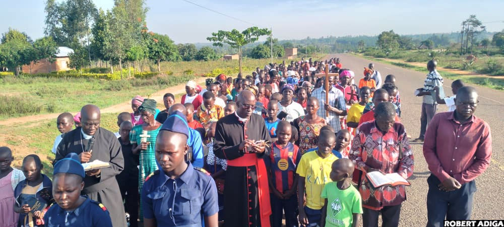 9:04 AM By Robert Adiga:Catholic faithful from St John Baptist Eucharistic Centre, Okudralu in Maracha district are also taking part in the Way of the Cross procession from Nyoro trading centre to the chapel, a distance of about 1.5 kilometres.