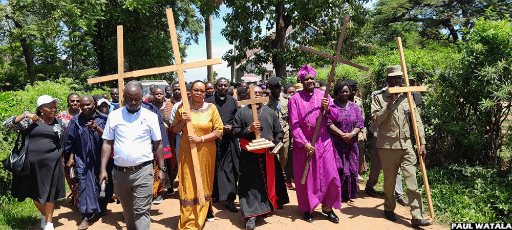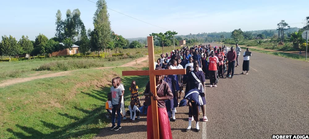 8:55 AM By Robert Adiga:In Maracha district in West Nile sub-region, Anglican Christians from Maracha Archdeaconry led by Archdeacon Rev. Can. Hillary Amuki are participating in the Way of the Cross from the River Ayi bridge to the archdeaconry headquarters.
