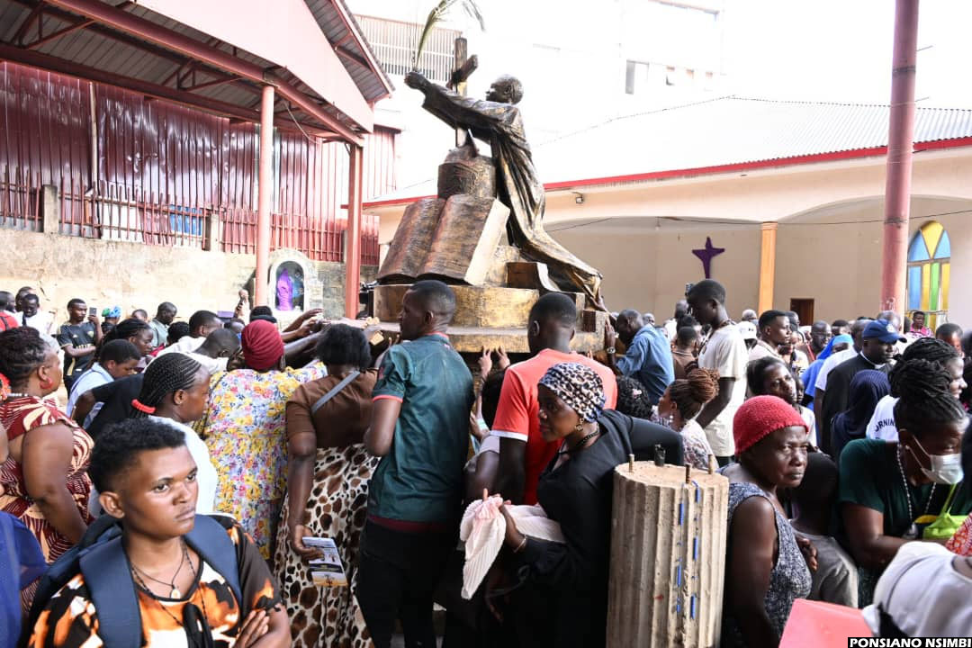 10:21 AM By Ponsiano Nsimbi: Christians at St.Yowana Maria Muzeeyi, one of the Uganda martyrs, in Kisenyi praying over his statue as they move from Rubaga to Old Kampala.
