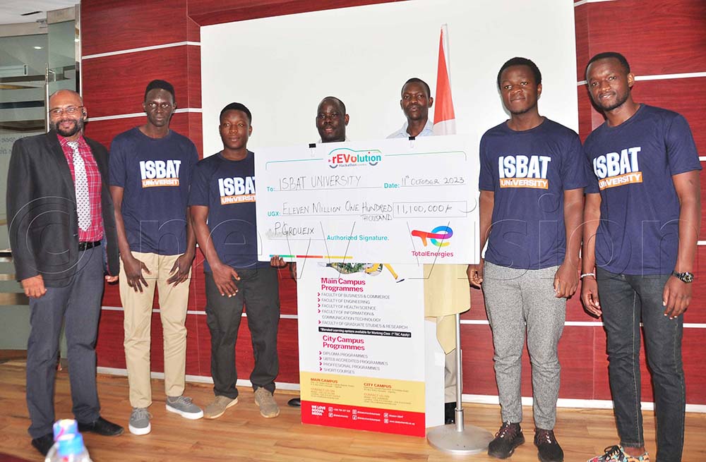 ISBAT Univasity students after winning total car charging places after they show cased their technology skills.