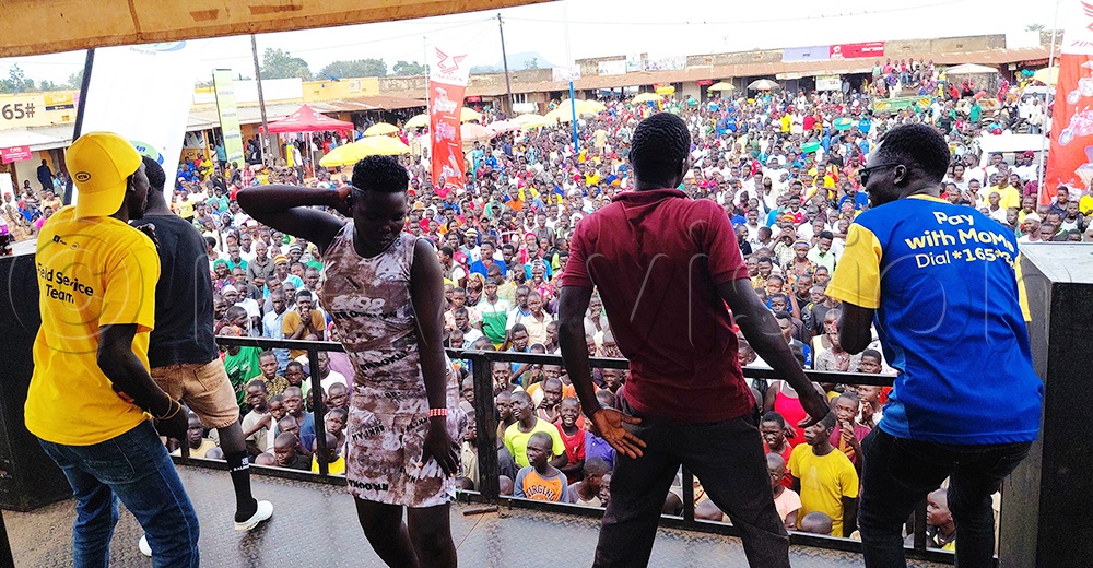 Patrick Mungufeni, the masters of Ceremony and MTN representative entertaining revelers during the Garimoshi in Maracha. (Credit: Robert Adiga)