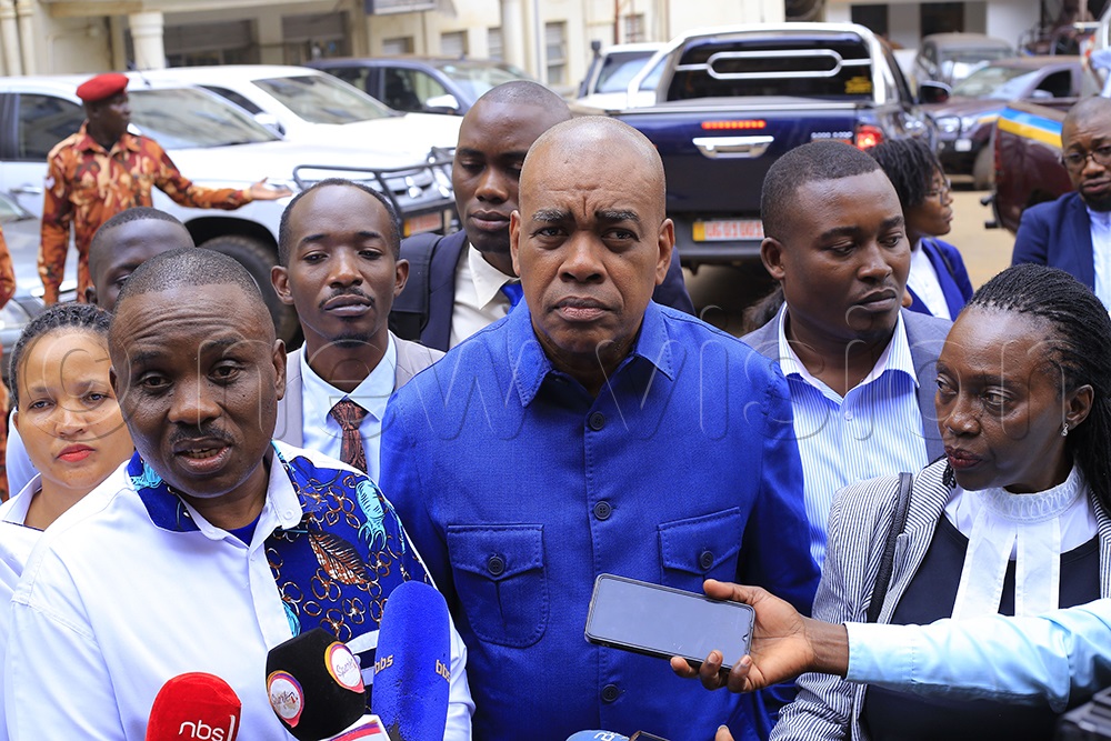 Kampala lord Mayor Erias Lukwango (left) and team of lawyers led by Kenya's former justice minister Matha Karua (right) visited prison’s boss at the headquarters at Parliamentary Avenue seeking the release of Dr Kizza Besigye and others from prison. (Photo by Alfred Ochwo)