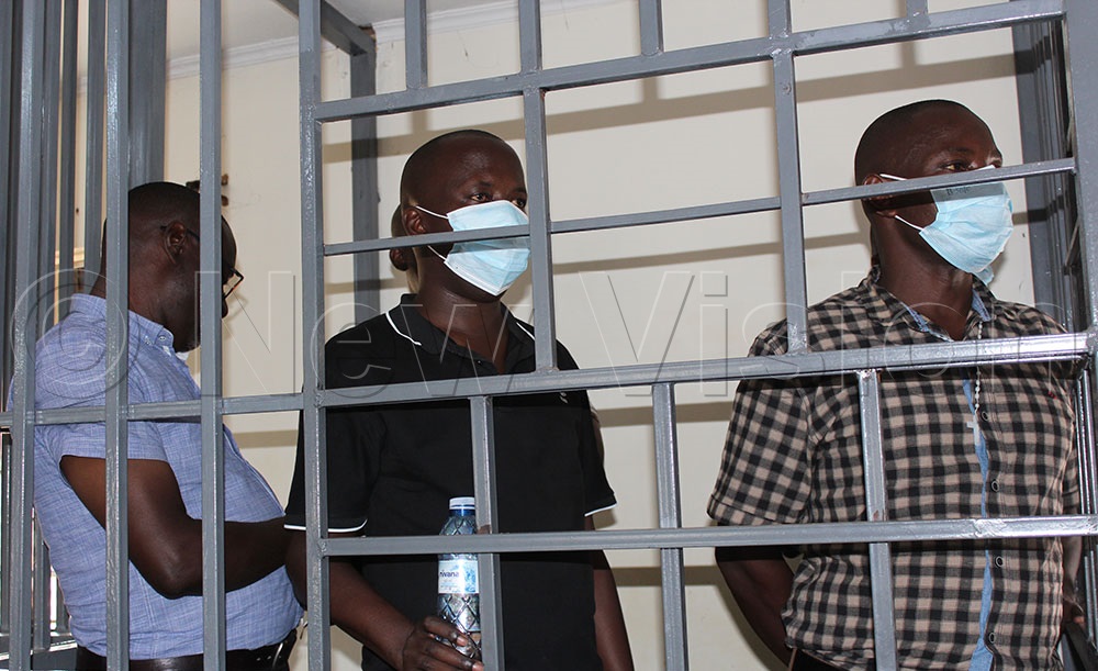 In the dock at the General Court Martial at Makindye in Kampala are security operatives accused of kidnapping a businessman in Kampala, before robbing him of 10kg of gold at gunpoint. The officers have sought bail, pending response from the prosecution. (Credit: Douglas Mubiru)