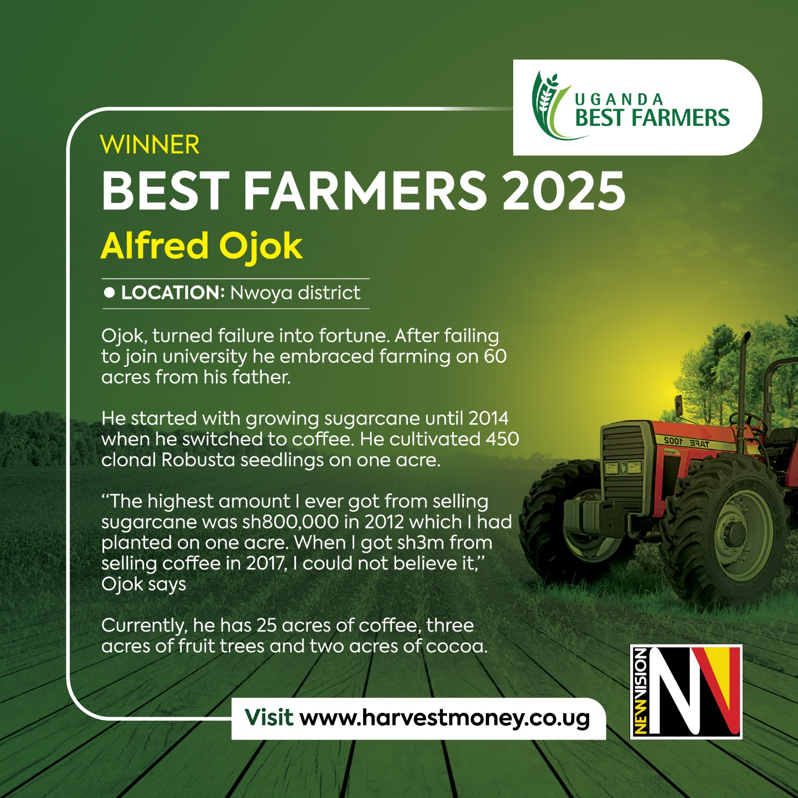 Since 2015 to-date, Ojok has 25 acres of coffee, three acres of fruits including avocado, jackfruit, oranges and two acres of cocoa farm and his farm. He has since named his farm, Hasting Coffee located at Lalar Village, Paminyai Subcounty, Nwoya district. It has improved the standard of living of those surrounding him who usually go to do casual labour there.