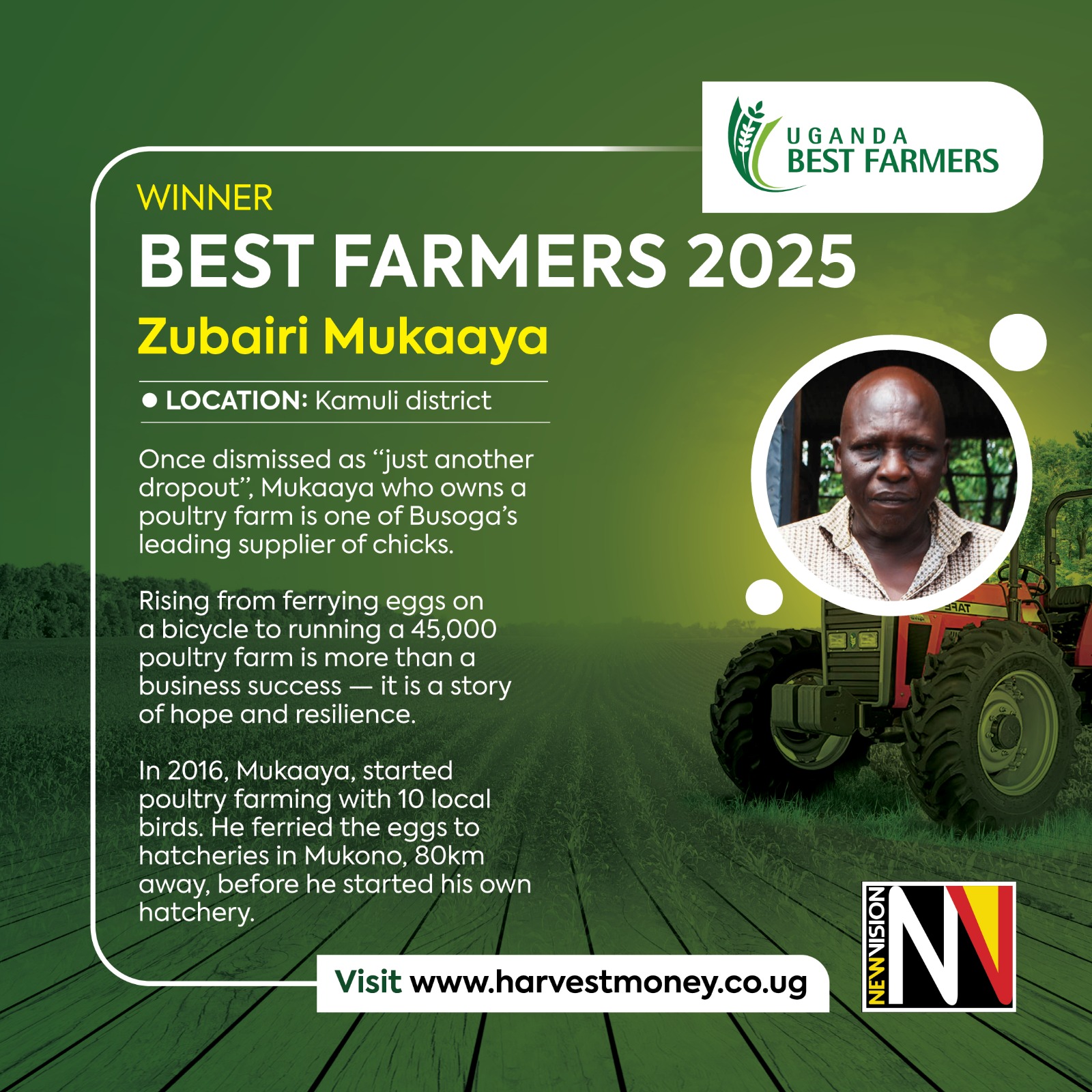 In 2016, Muaaya, started poultry farming with 10 local birds. He ferried their eggs to hatcheries in Mukono, 80km away, before breeding the chicks at home. By 2025, his enterprise, Bakusekamaja Poultry Farm, had 45,000 birds and three incubators producing 40,000 chicks per month. Other enterprises include fish ponds, coffee, maize, bananas, and goats.