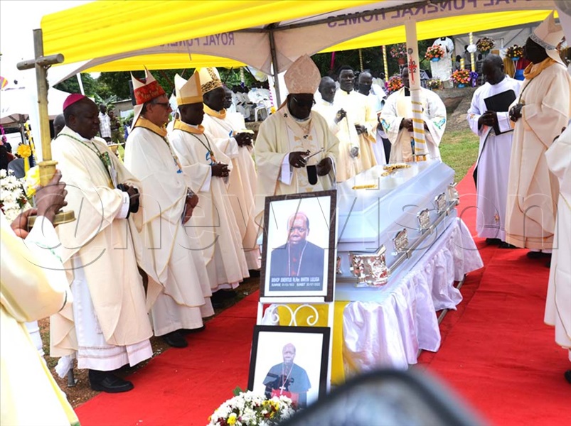 John Baptist Odama-the achbishop Gulu and other religious leaders praying for the body of late Martin Luluga before burial. (Photo by Robert Adiga)