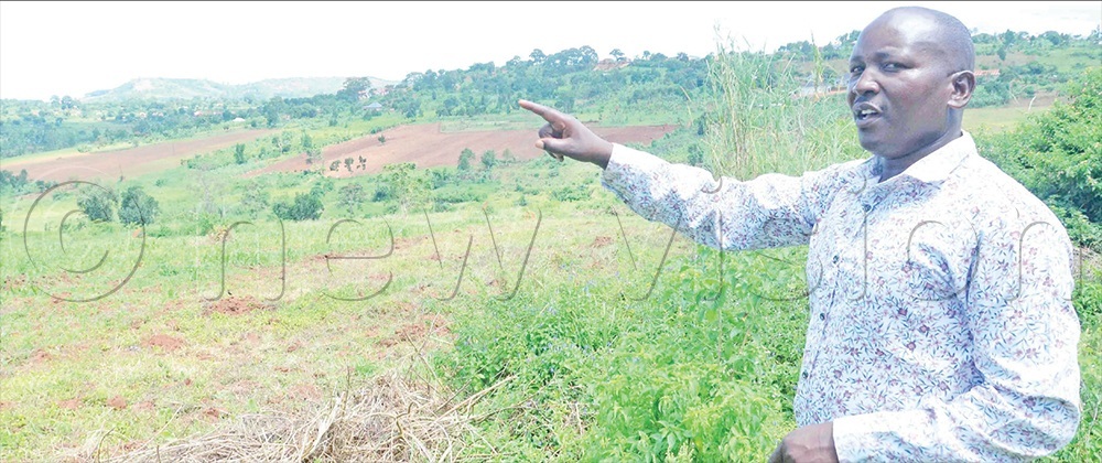 Kampiringisa chairperson James Kijinji showing the boundaries of the contested 30 acres of land.