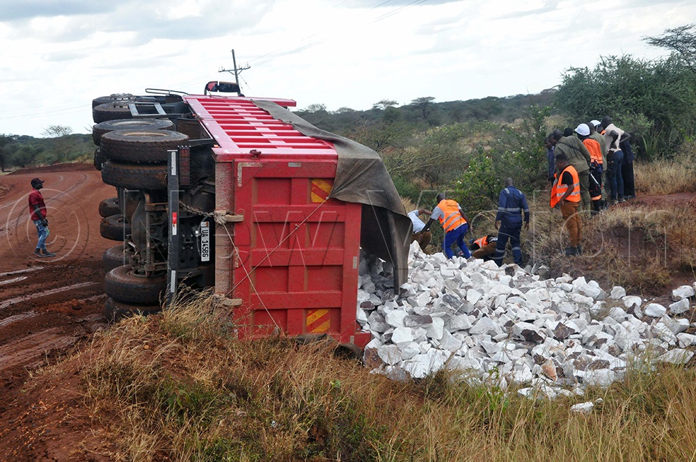Police attributed the crash to slippery road, while some eyewitnesses blamed the driver for losing control of the heavily loaded truck. The murram road becomes muddy and slippery even after light rainfall.