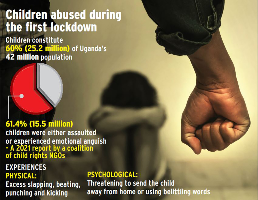 More than half of Uganda’s children experienced physical or psychological violence from their guardians during the first lockdown, a 2021 report conducted by