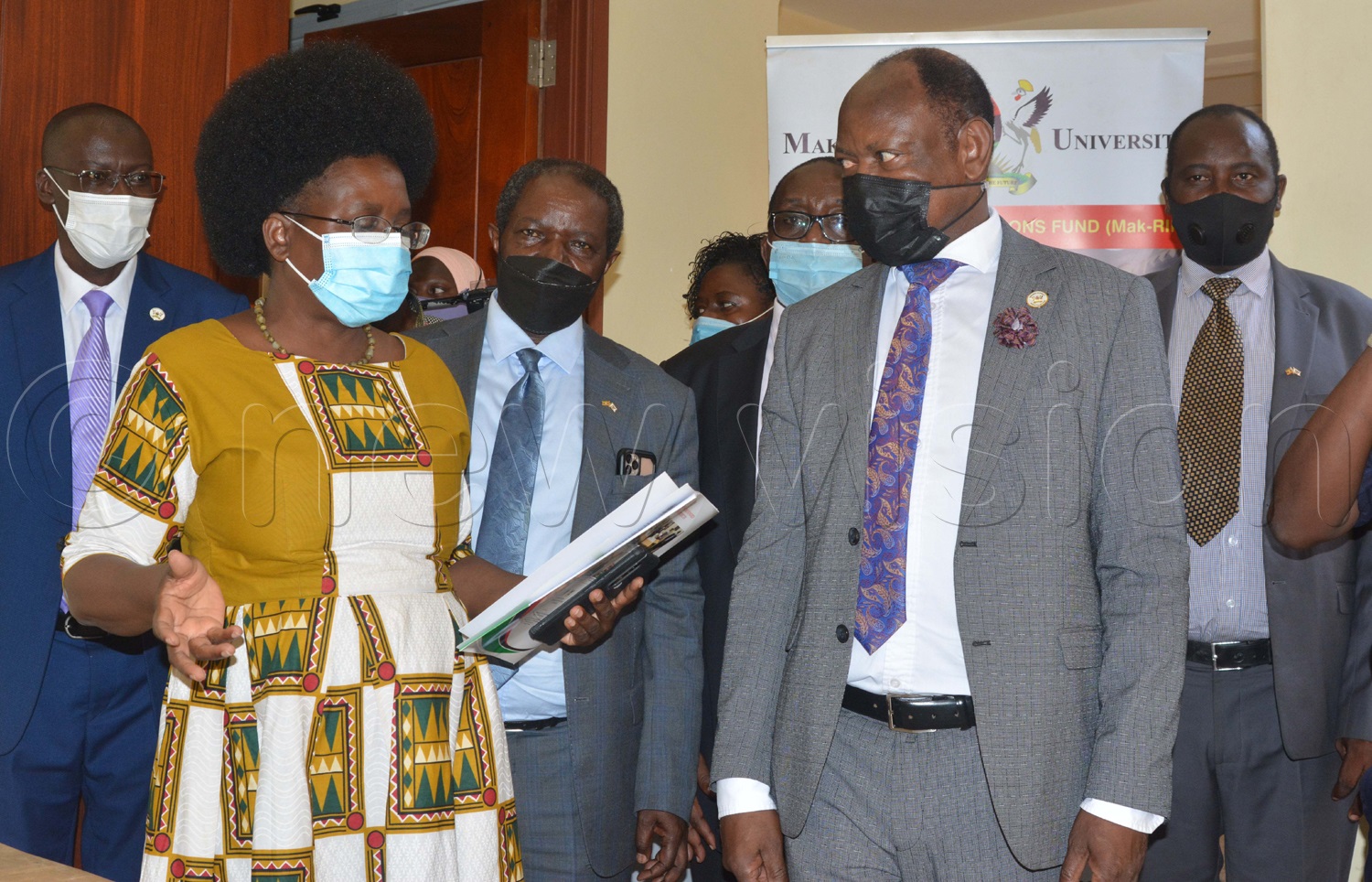 Minister Monica Musenero (left) with Prof. Barnabas Nawangwe during the open day at Makerere University. Photo Mary Kansiime