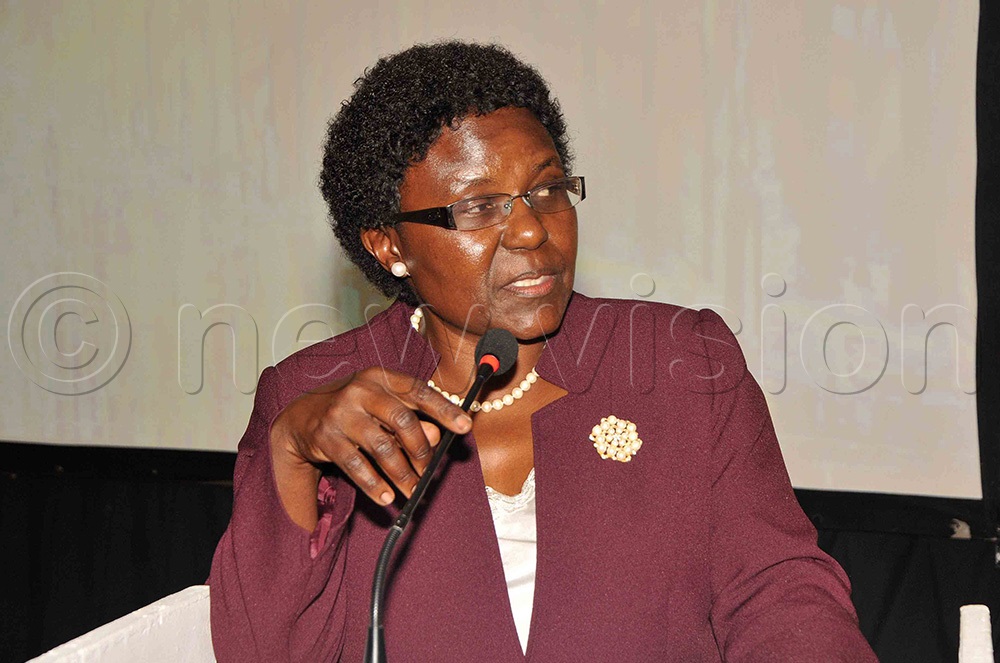 Minister of Works and Transport Monica Azuba Ntege addresses the press on the new Uganda Airlines at the ministry offices in Kampala on April 10, 2019. (Photo by Maria Wamala)