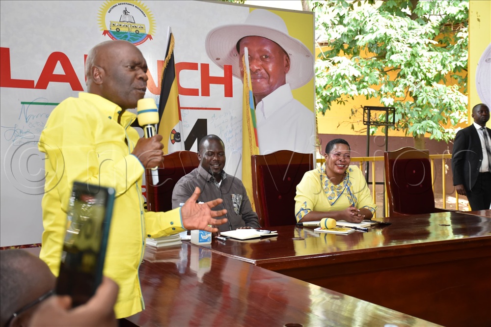 On arrival at NRM's head office, Kyadondo Road, Nsibambi, dressed in a yellow shirt (NRM party colour), was received by Richard Todwong, the NRM secretary general and Speaker of Parliament Anita Among, who is also Second Vice Chairperson.