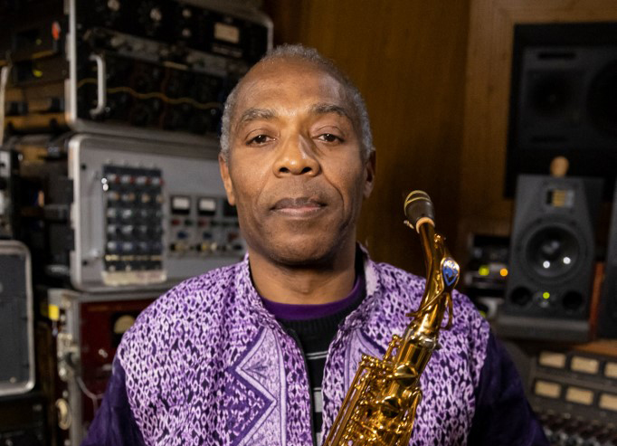 In this file photo taken on October 3, 2022 Nigerian musician Femi Kuti, son of the pioneer of Afrobeat Fela Kuti, poses with a saxophone. (Photo by Geoffroy VAN DER HASSELT / AFP)