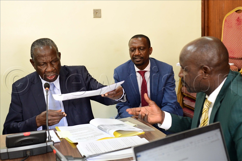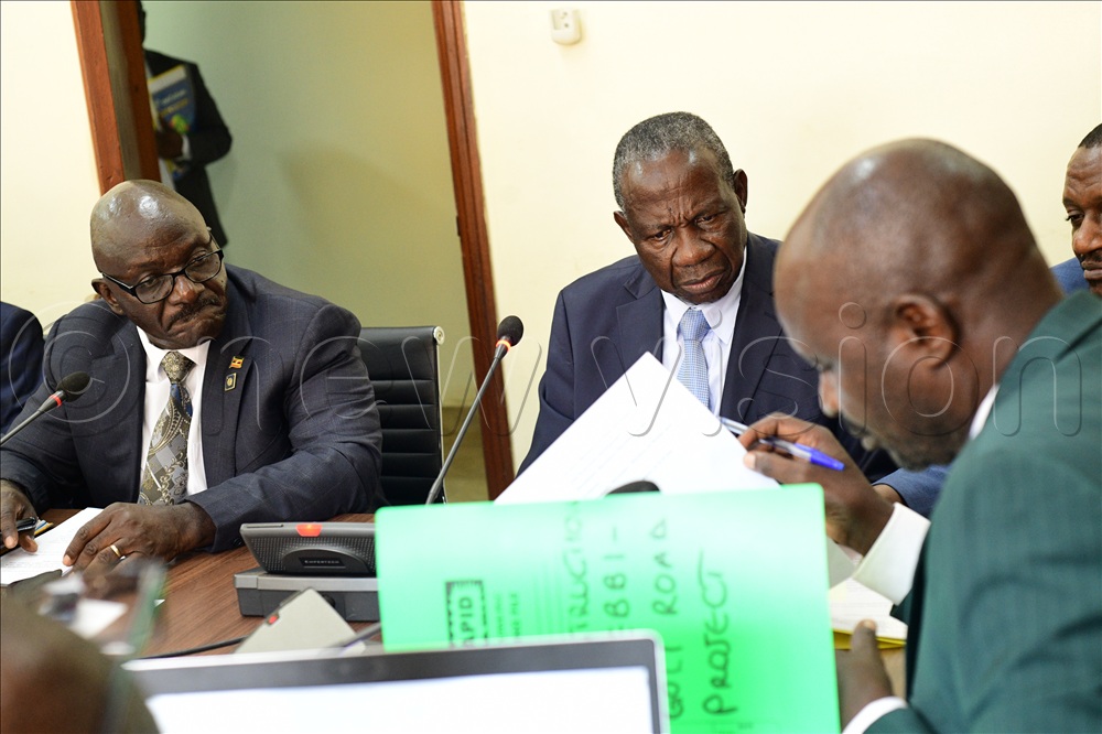 (L-R) State minister for higher education John C. Muyingo, Minister of Works and Transport Gen Edward Katumba Wamala and Finance minister Matia Kasaija before national economy committee session on October 15, 2025.