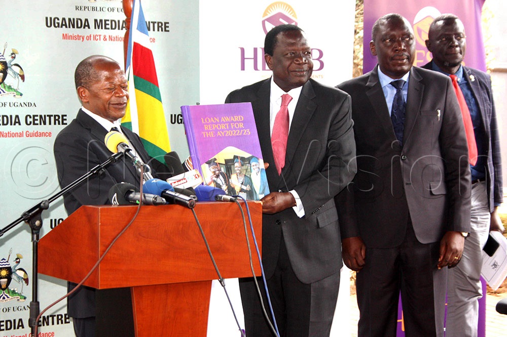 Higher Education Students' Finacing Board releasing results of 2022-2023 beneficiaries at Uganda Media Centre recently (Photo by Isaac Nuwagaba)