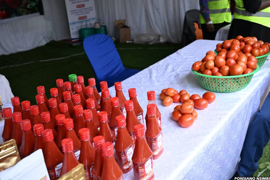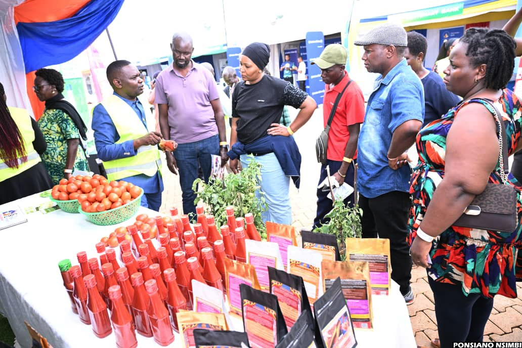 Godfrey Kimera of City Sites Agro Unit dealing in tomato farming and value addition has been explaning to expo-goers how their agribusiness works.
