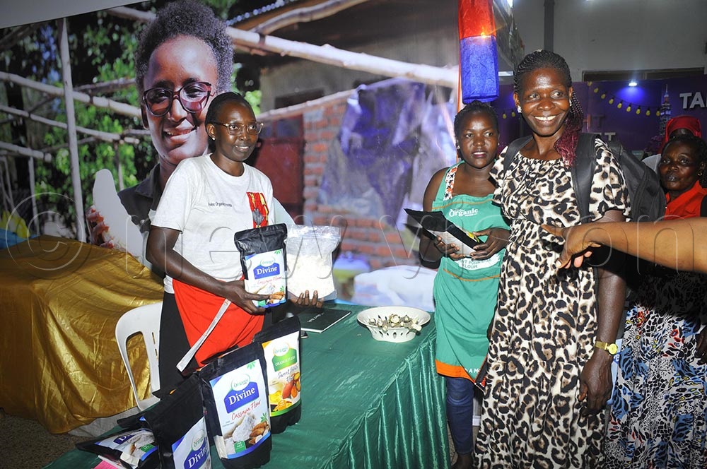 Brenda Obura, one of the youth trainees in value addition displays her products during the Uganda Manufacturers Association trade fair on October 8, 2023. (Credit: Wilfred Sanya)