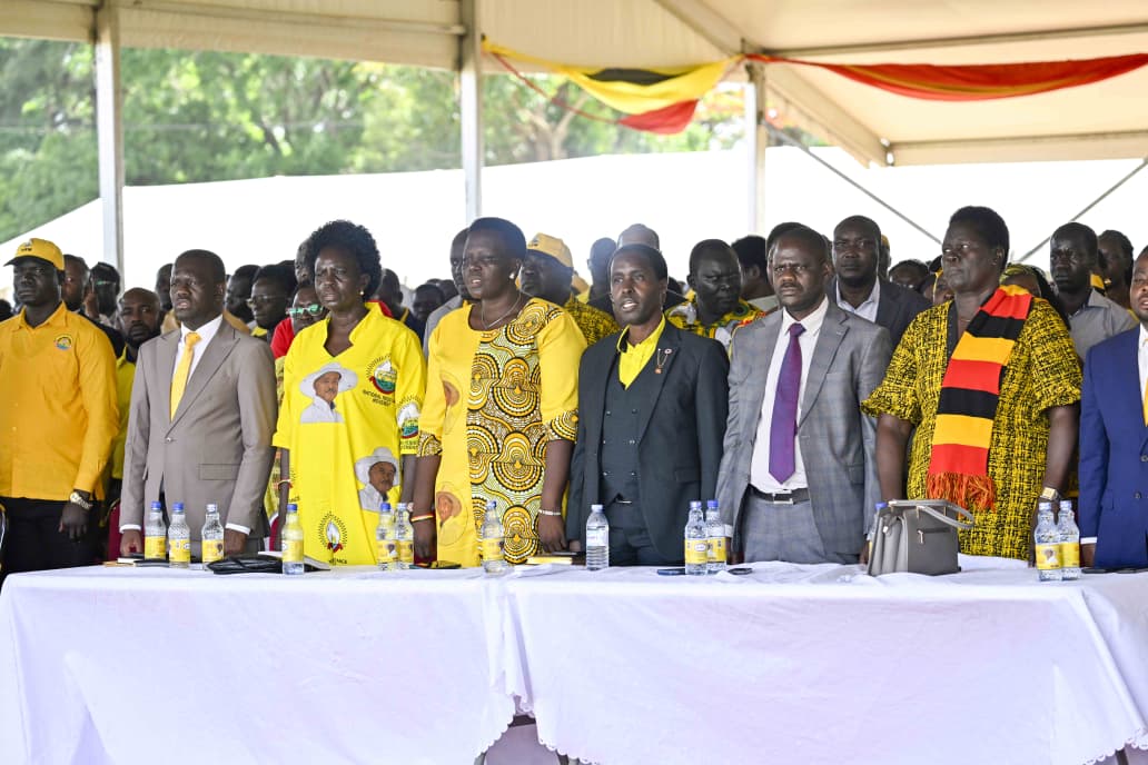 The President was received by Government Chief Whip Denis Hamson Obua, Minister of Health Dr Jane Ruth Aceng, State Minister for Northern Uganda Dr Kenneth Omona, State Minister for Youth and Children Affairs Balaam Barugahara, and the Director General of the External Security Organisation, Ambassador Joseph Ocwet, alongside other government officials and local leaders.