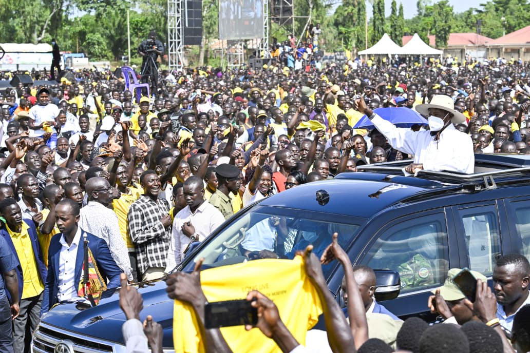 President Yoweri Museveni welcomed by thousands of residents at Lango College grounds in Lira City.