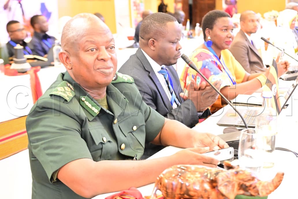 _______________ Anyakun interacting with Kibenge Grace Adongo, Principal human resource officer, East African Community (EAC). Participants at the event. Sanusi Tejan Savage making his remarks. Aggrey Kibenge, Permanent Secretary Ministry of Gender. Lucy Daxbacher, Migration expert, International Government Authority on Development (IGAD). Hon. Minister Esther Davina Anyakun, Regional Ministerial Forum on Migration (RMFM) chairperson delivering her remarks at the opening ceremony.