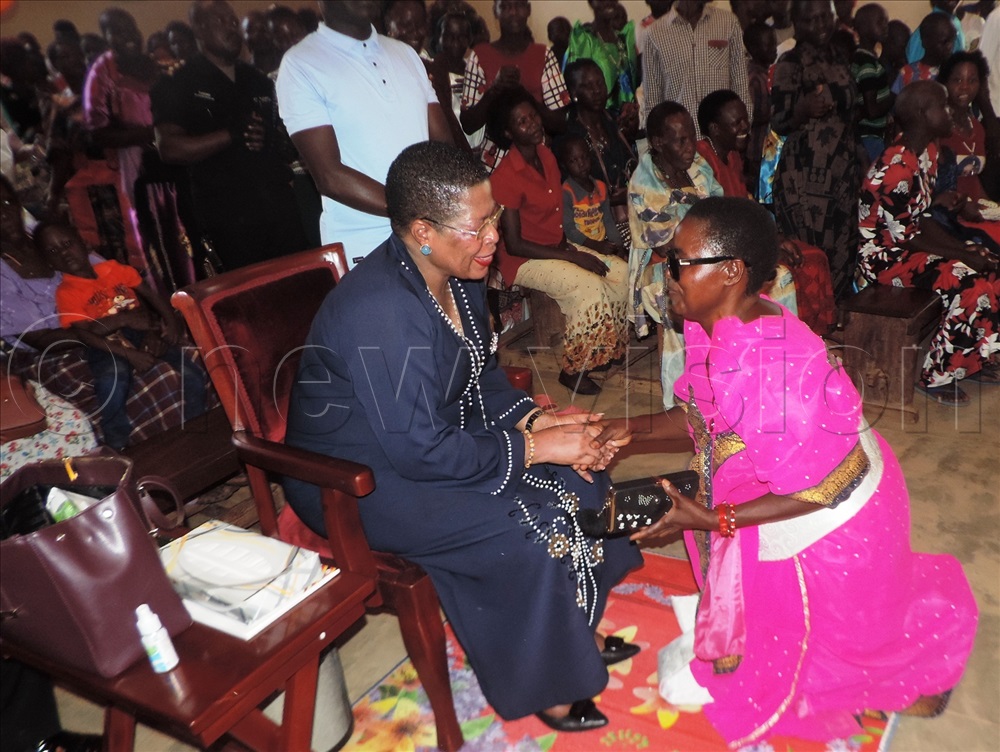 A worshipper greets Speaker Anita Among after the Christmas mass at Irundu Catholic Church. Photos by Tom Gwebayanga