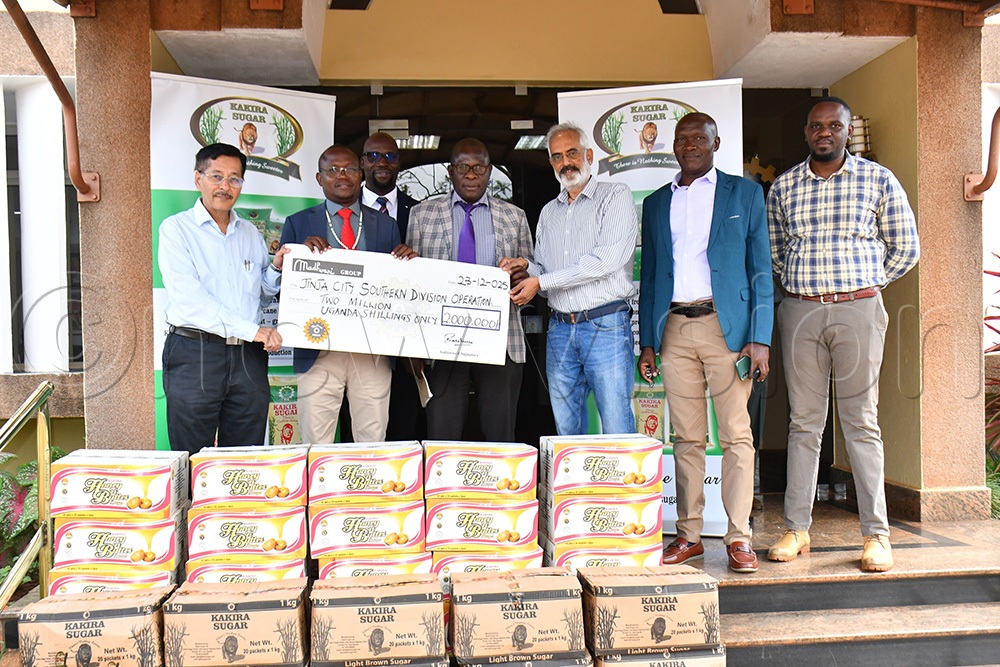 The donation, handed over at the KSL factory on December 22, 2025, at Kakira Sugar Ltd factory, included 15 boxes of sugar each with 20kgs (300kgs) and 20 boxes of assorted Kakira sweets (100kgs).