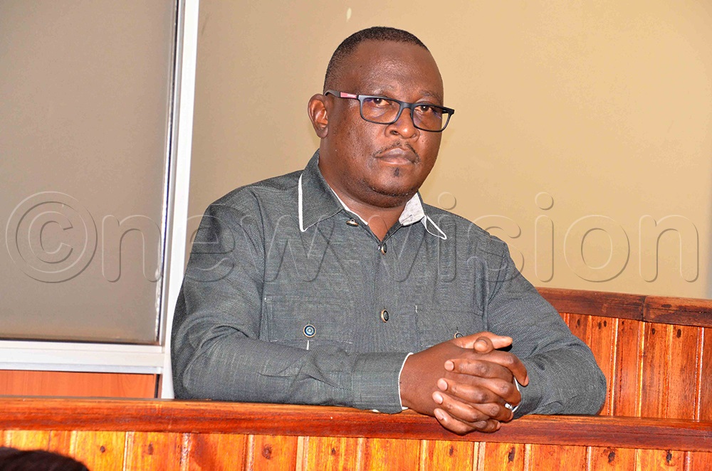 Chairperson of Kampala District Land Board David Balondemu standing in the dock at City Hall Court, on Friday, October 20, 2023. (Photo by Stuart Yiga)