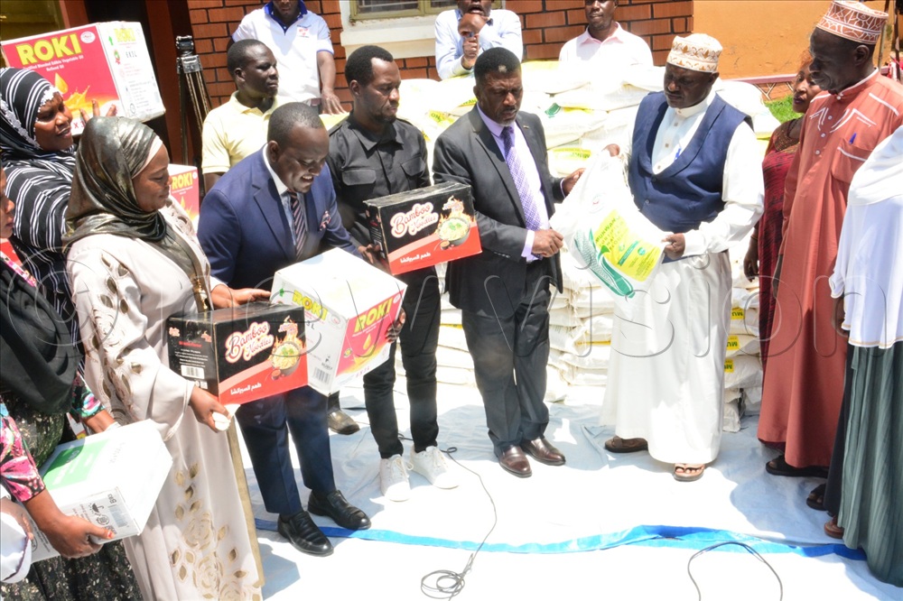 Newly elected Kampala City Lord Mayor Eng. Ronald Nsubuga Balimwezo giving out relief items to Muslims. (Photos by Erinah Nabasa)