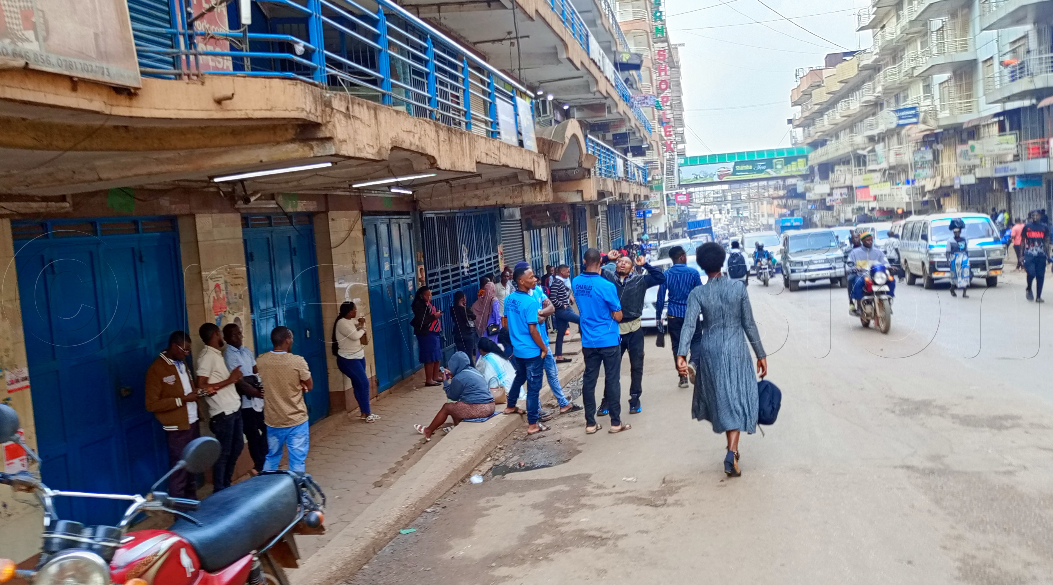 Traders sat outside their shops after closing their shops along Luwum and Mini price areas. (Photo by Moses Kigongo)