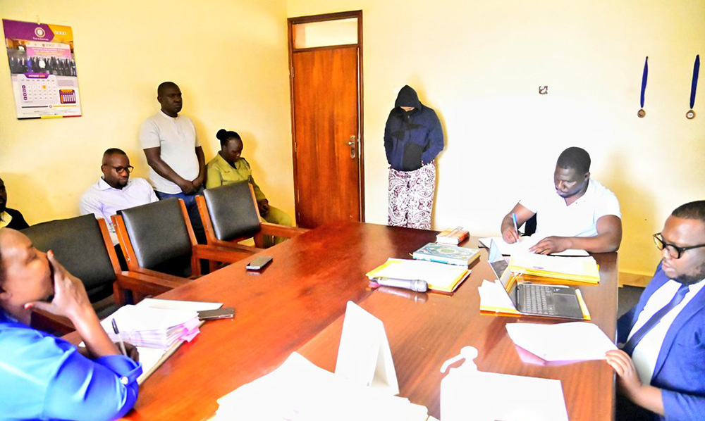 Elizabeth Esther Steenkamp (extreme end in a black hoodie) a Kenyan national, and Managing Director of Washa Lidjiwe Investments Limited was charged before the Makindye Chief Magistrate’s Court. (Courtesy photo)