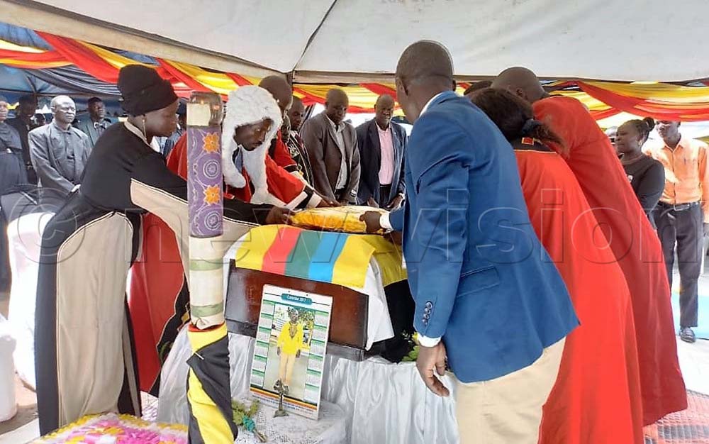 The council Speakers from WestNile region laying a wreath on the casket of the deceased Speaker
