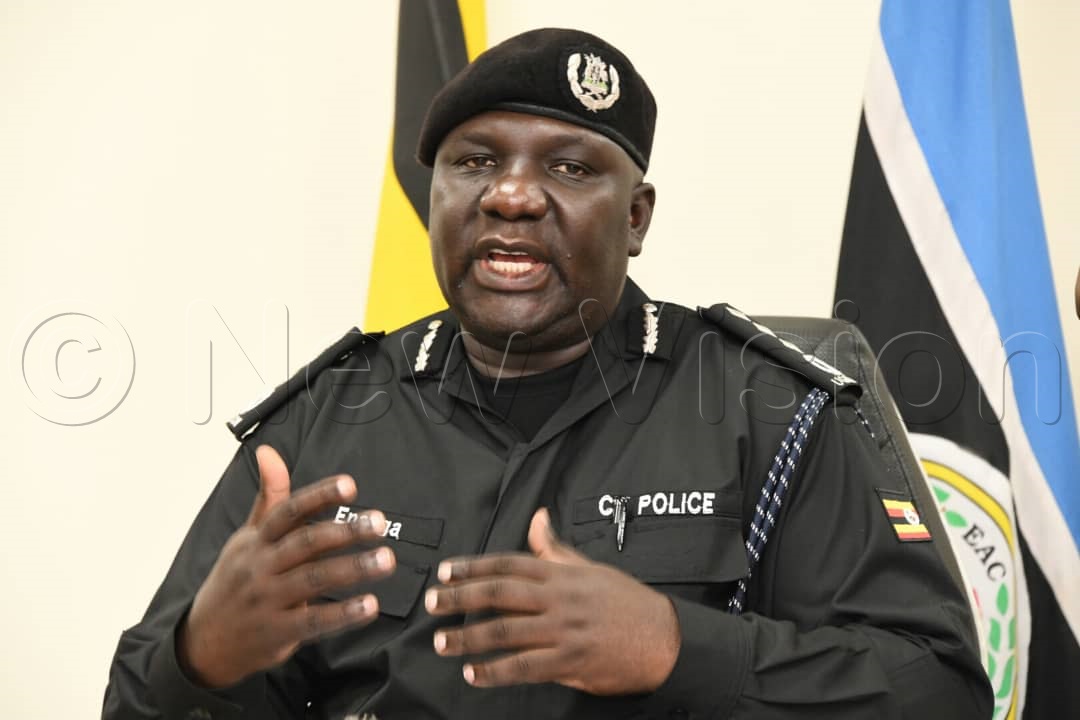 Uganda Police spokes person Fred Enanga addressing the media during the joint weekly security press briefing at Police headquarters Naguru on Monday May 22 , 2023 /Photo by Mpalanyi Sentongo