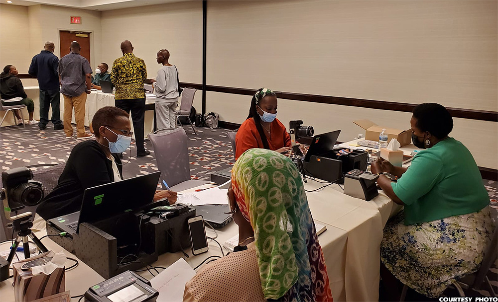 Embassy staff carry out national ID enrollment and issuance of ready IDs for diaspora members. (Courtesy photo)
