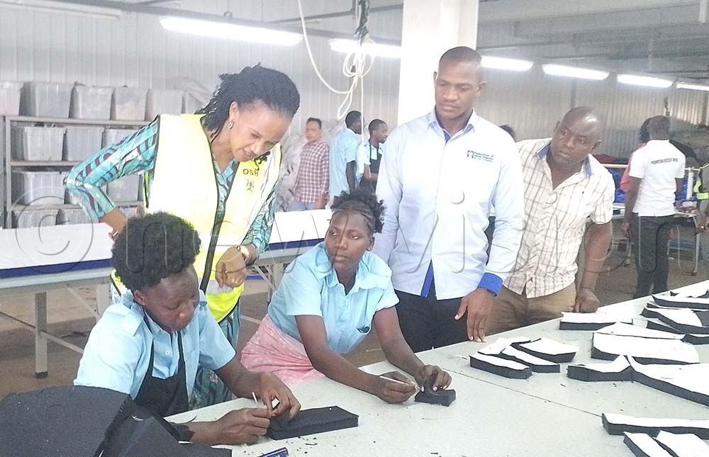 Minister Anyakun and her delegation talking to some of the factory workers. (Credit: Frederick Kiwanuka)