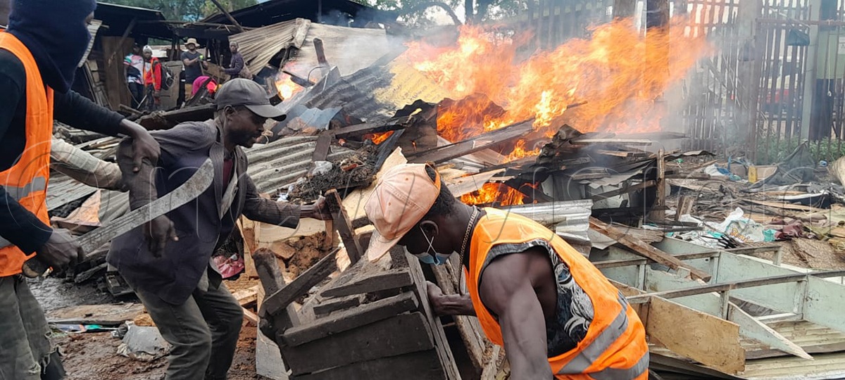 Fire broke out as authorities razed an illegal makeshift market.