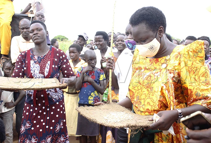 Agnes Atim Apea (Right), the Vice Chairperson Agriculture Cluster Development Project (ACDP).