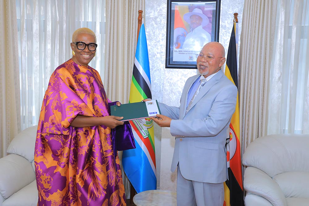 KAMPALA - The Minister of Foreign Affairs Gen. Jeje Abubakhar Odongo on Tuesday, February 17, received copies of credentials from Nwanneakolam Vwede-Obahor,
